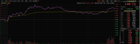 值得注意的是,今日沪深300ETF明显放量。早盘开盘,沪深300ETF就快速放量上涨,华夏沪深300ETF(510330)、易方达沪深300ETF(510310)、嘉实沪深300ETF(159919)早盘均成交超3亿元,超出昨日全天成交金额。