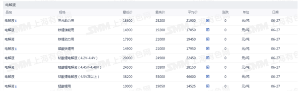 电解液价格