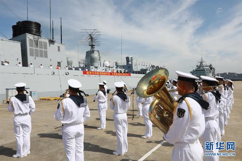 6月29日,中国海军第37批护航编队圆满完成亚丁湾、索马里海域护航任务,返回湛江某军港。这是欢迎仪式现场。新华社发(江晓卫 摄)